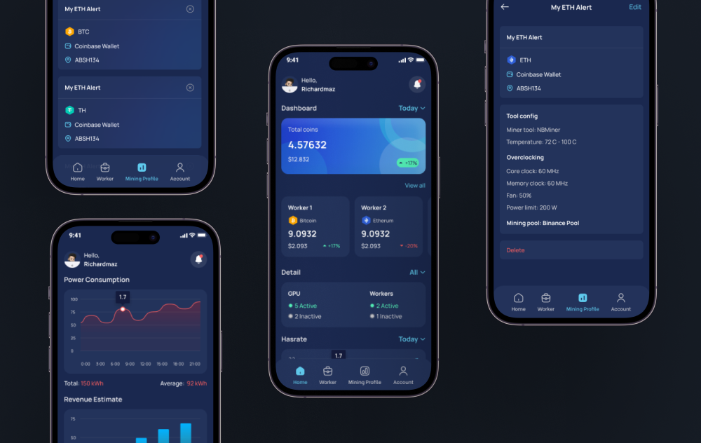 - The app will feature a real-time dashboard that displays the user’s hash rate, earnings, and mining status. Users will be able to customize their dashboard to display the information they need to monitor their mining operations effectively. Additionally, the app will provide alerts to users when there are changes in the mining pool or any issues that may impact their mining performance.